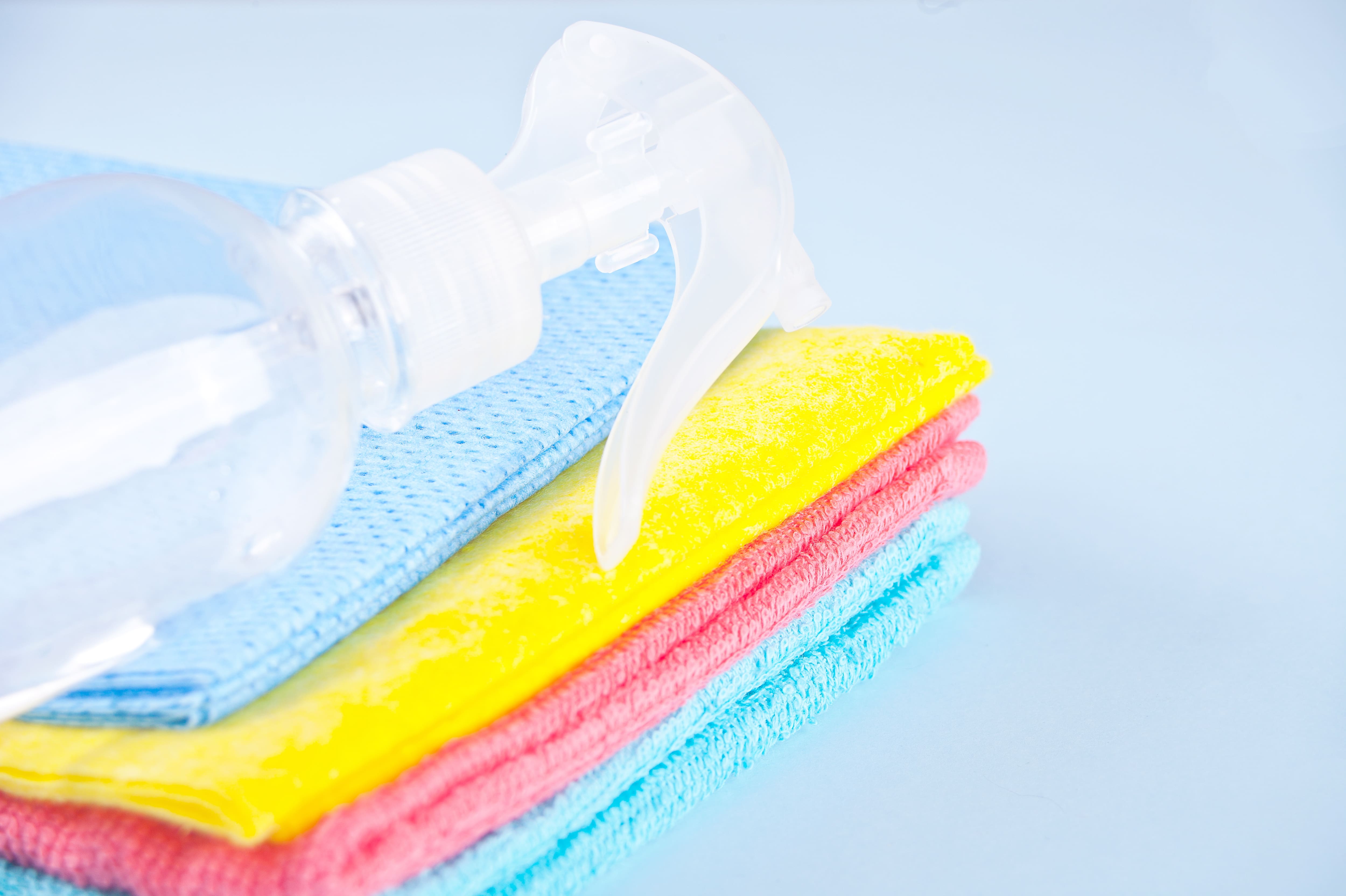- The microfiber cloth cleans most surfaces, and when thoroughly moistened with water, it requires a minimal amount of cleaning product.